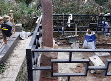 Затем мы вернулись на участок и приступили к работе на территории могилы: пропололи участок, а также демонтировали старые памятник и ограждение.