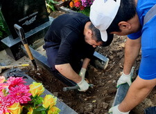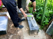 Затем мы вновь вернулись на кладбище: нам предстояло демонтировать основание надгробья, с чем мы и справились на следующем этапе работы.