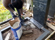 Затем поправили памятник и возвели вокруг могилы деревянные борта, в которые и будет залит цементный каркас.
