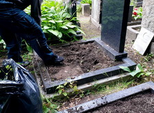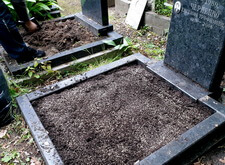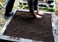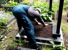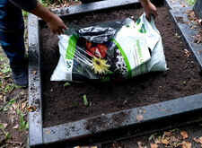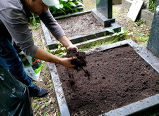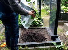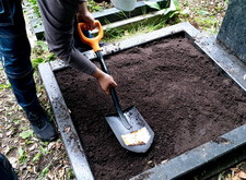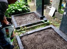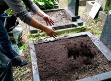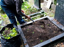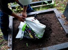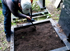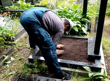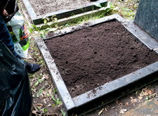 Закончив с первой могилой, мы приступили ко второму месту захоронения: засыпали новой землёй заранее прополотый цветник.