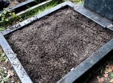 В данном заказе нам предстояло навести порядок на двух одинаковых могилах, находящихся рядом друг с другом. Помимо уборки, клиент пожелал высадить в цветниках газон. Приехав на кладбище, мы застали захоронения в следующем виде: в цветниках, как, впрочем, и вокруг них, росла трава, а надписи на памятниках потускнели и стали сложно различимыми.