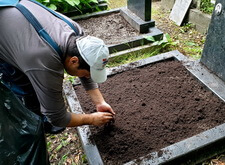 Уборка двух могил и посадка цветущего газона